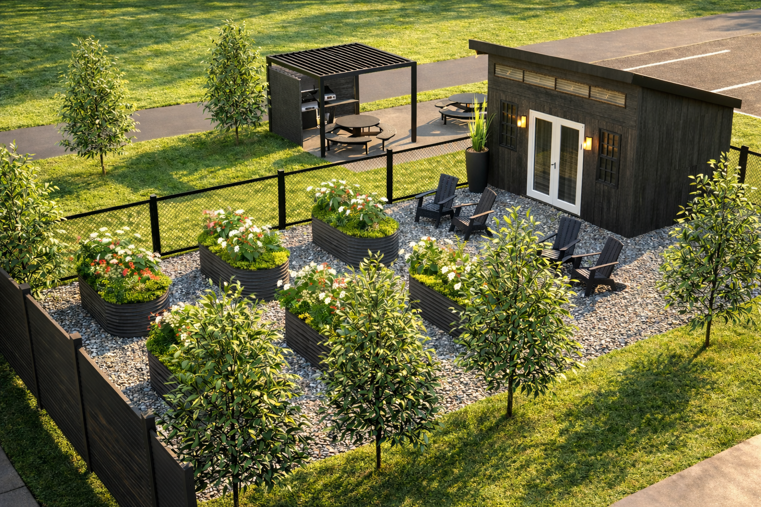 At the heart of our outdoor design is a community garden area, complete with raised garden beds and a dedicated potting shed. Whether you’re an experienced gardener or simply enjoy spending time outdoors, this space offers the opportunity to: